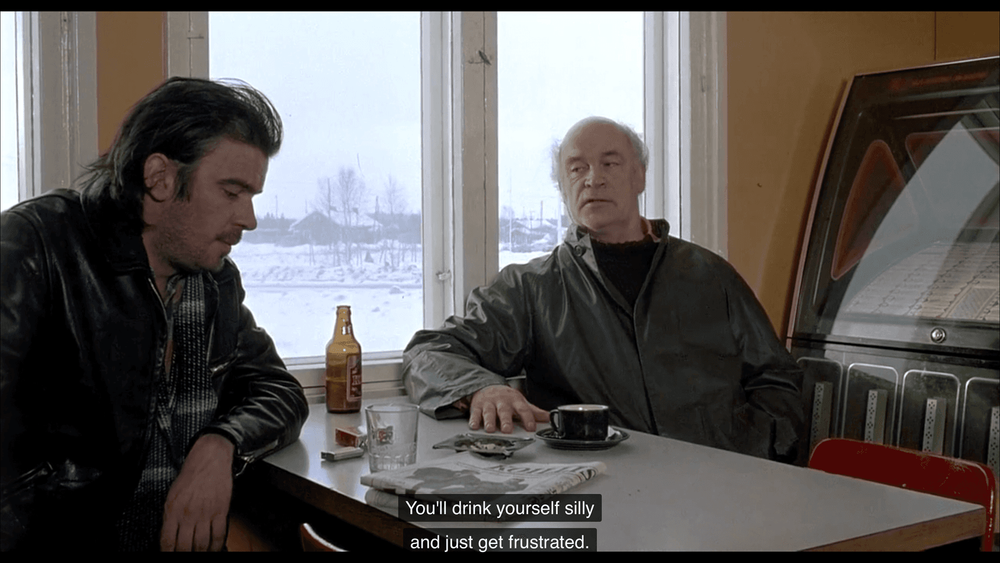 Протиставляючи, Каурісмякі тим самим прирівнює мистецтво та пʼянство, проте так, що одне заміщує, виключає інше, ніби тіньовий еквівалент, але разом з цим проявляючи їхню спорідненість. Тому що, коли вживаєш спиртні напої із кимось, то знаєш точно, що у комусь іще, в Іншому, тече те саме, що й у тобі — той же spiritus. Значить ви — одного духу. Такий же ефект має мистецтво, в якому ми впізнаємо (і признаємо) ніби частинку себе самого, проте поза собою — в Іншому. Мистецтво та алкоголь — це можливість та необхідність Іншого, це два шляхи виходу. Не випадково вони часто йдуть у комплекті, як у випадку Каурісмякі.