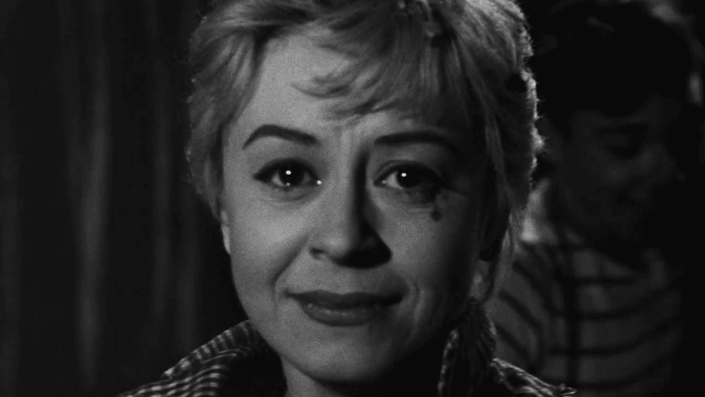 І от знову Кабірія закручена у черговому віражі розбитої ілюзії. Вона виходить у натовп — у це русло усіх попередніх та майбутніх ілюзій. Мережа розмаїтих емоцій зосереджується у перемінному виразі її розгублено зведеної над невзгодами посмішки. Обличчя Кабірії неначе прокручуваний кристал переливається й відсвічує міріадами контраверсійних емоційних граней. Печаль проступає з піднесення радості, радість — з гіркоти печалі. Суміщені емоції скляніють кришталево чистими сльозами в її очах, ті аж до самого кінця фільму залишилися недоторканими лайкою і гульбою (а може цією лайкою і гульбою тільки й відточуються) — з цих очей бʼє не замулений потік правдивості, аніскільки не брудніший за струмені кастальського джерела. Тієї правдивості, що не уникає переплетіння суперечливого.