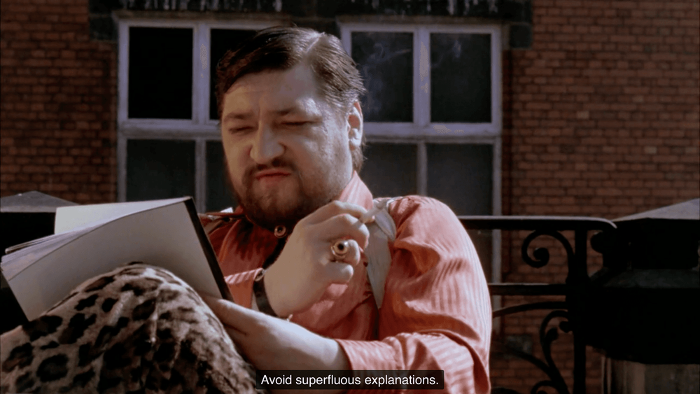 Генію також інколи треба відпочивати. Фассбіндер це чудово знав і вміло практикував. Проте що означає «відпочинок»? По суті, це протилежність напруженню, тобто — розслабленість. Наприклад, розслабленість мови — це розпад її структури, розірваність або ж маячня.