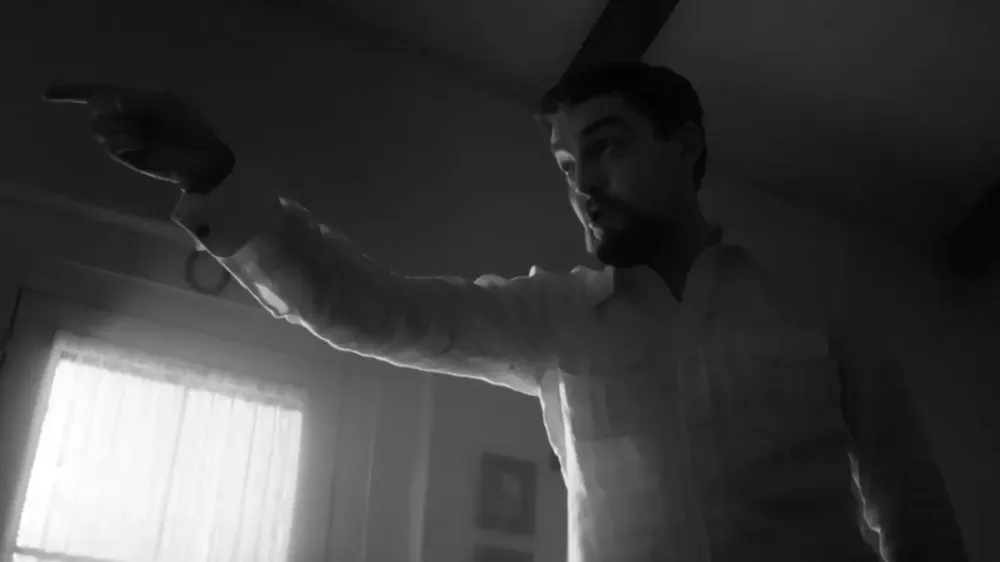 Чому чорно-біле? Це викликає незручність, ніби потрапив кудись не туди, відчувається внутрішня неузгодженість від того, що знаходишся в іншому часі. Коли я говорю “туди” або “там”, то розумію не просто вказаний напрям чи невідоме місце, про яке я здогадуюсь, я сприймаю це як не “те” місце, що я зайняв до початку кіно, це місце тепер зовсім інше. Виходить, і час, і простір, в якому це місце знаходиться, зазнали змін. Моє місце перед екраном, як своєрідна межа між мною та фільмом. Але це й межа загалом — між тим місцем, що до початку кіно, і місцем під час кіно. Як відбувається це раптове, перше переміщення?