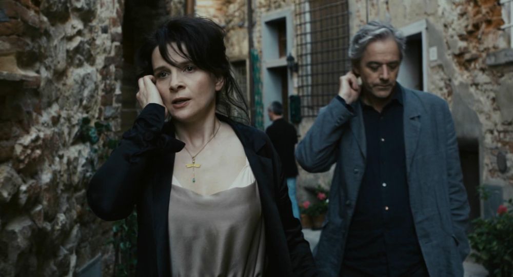 Стрічка розпочинається зі сцени презентації дослідження, книги з назвою «Copia conforme». Автор книги замислюється над перевагою копії над оригіналом. Перед нами подія, що перформує копію, адже книга презентується публічно, тож таким чином відбувається встановлення істини копії. Презентація виступає у цьому контексті своєрідним жестом – щось відбувається, але жодним чином цей жест не пояснюється. Суміжно до цього істина є тим, що не повідомляється, а так би мовити вступає у дію. Одною із слухачів є героїня, котра постійно відволікається на зовнішні обставини, попри її відчайдушні спроби таки дослухати автора до кінця, вона залишає подію раніше. Під час перебування цього автора у Тоскані вона запрошує його відвідати старі містечка, які би мали експлікувати написаний текст. Дослідник радо приймає цю пропозицію як певну наживку, яка пізніше перетворюється на певний онтологічний договір – між ними виникає невисловлена згода, в якій герої не з’ясовують, що відбувається насправді, не намагаються перевірити автентичність, попросту вони перебувають у режимі гри або події – вони починають розмовляти як подружжя. Важливо зазначити, що ця комунікація не є вдаванням або ж навіть брехнею, а – згодою на відкритість.